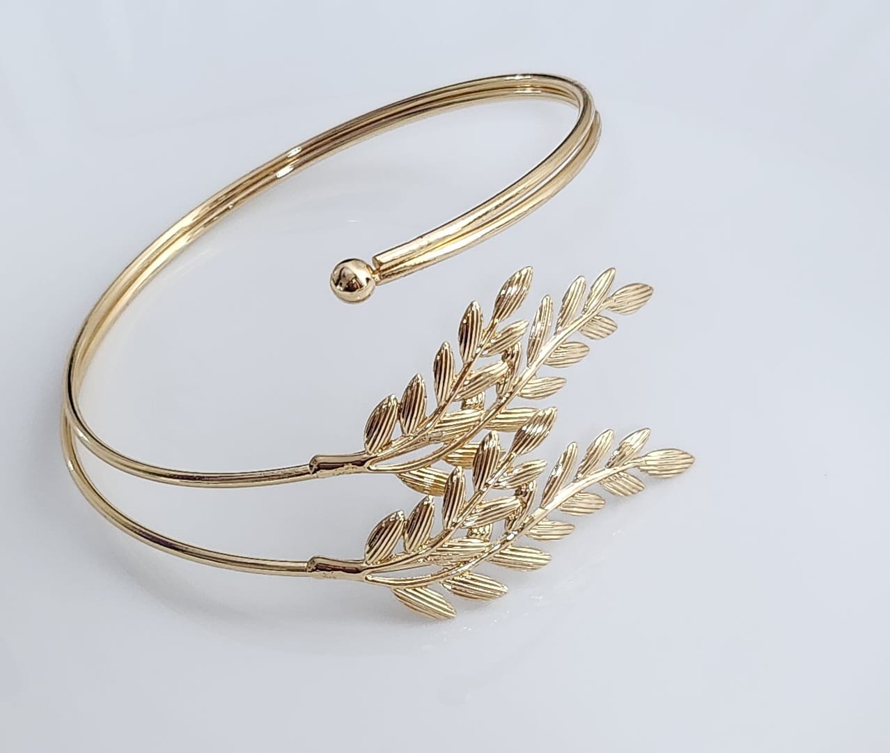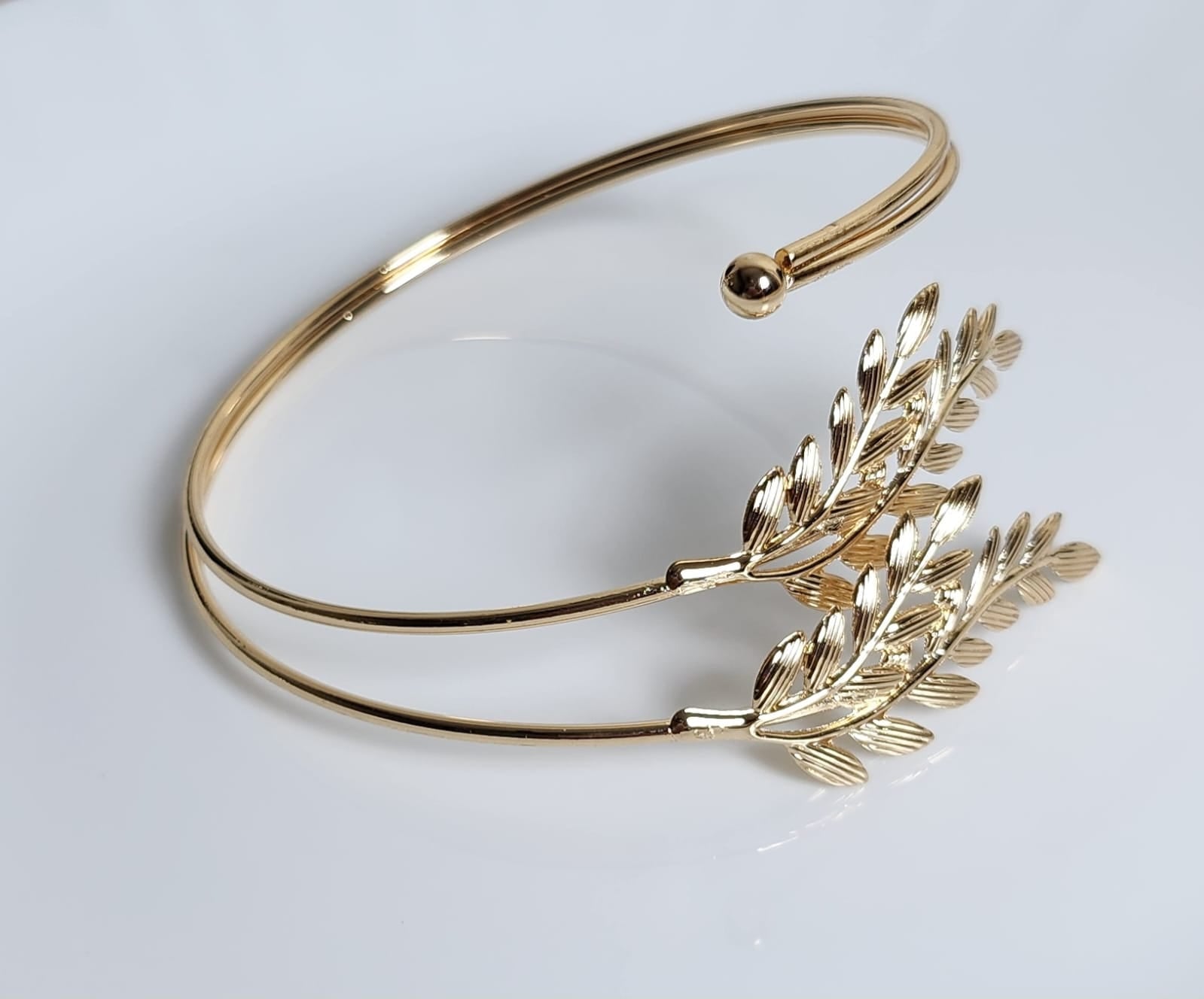 Elevate your style with this trendy leaf gold-tone arm cuff designed for women. Expertly crafted to highlight the natural elegance of leaf motifs, this arm cuff adds a refined touch to any outfit. Its lightweight design ensures comfortable wear throughout the day, making it a perfect accessory for both casual and formal occasions. Durable gold-tone finish provides lasting shine without tarnishing, enhancing your accessory collection with a chic, nature-inspired statement piece.